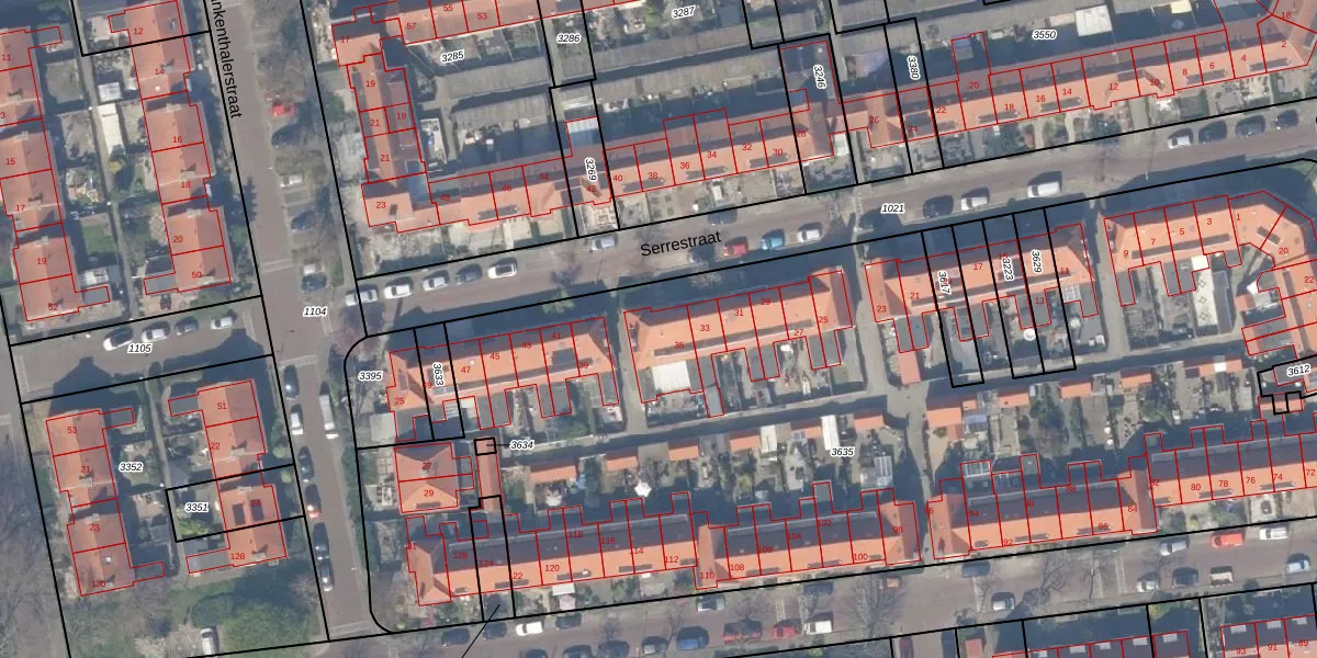 Het perceel waarop Serrestraat 35 staat heeft een oppervlakte van 6954 m². Dit is een zeer groot perceel. De perceeloppervlakte wordt geregistreerd door het Kadaster. Gedetailleerde informatie over de maten van dit perceel kunt u vinden in het rapport Kadastrale kaart met maatvoering van Serrestraat 35.