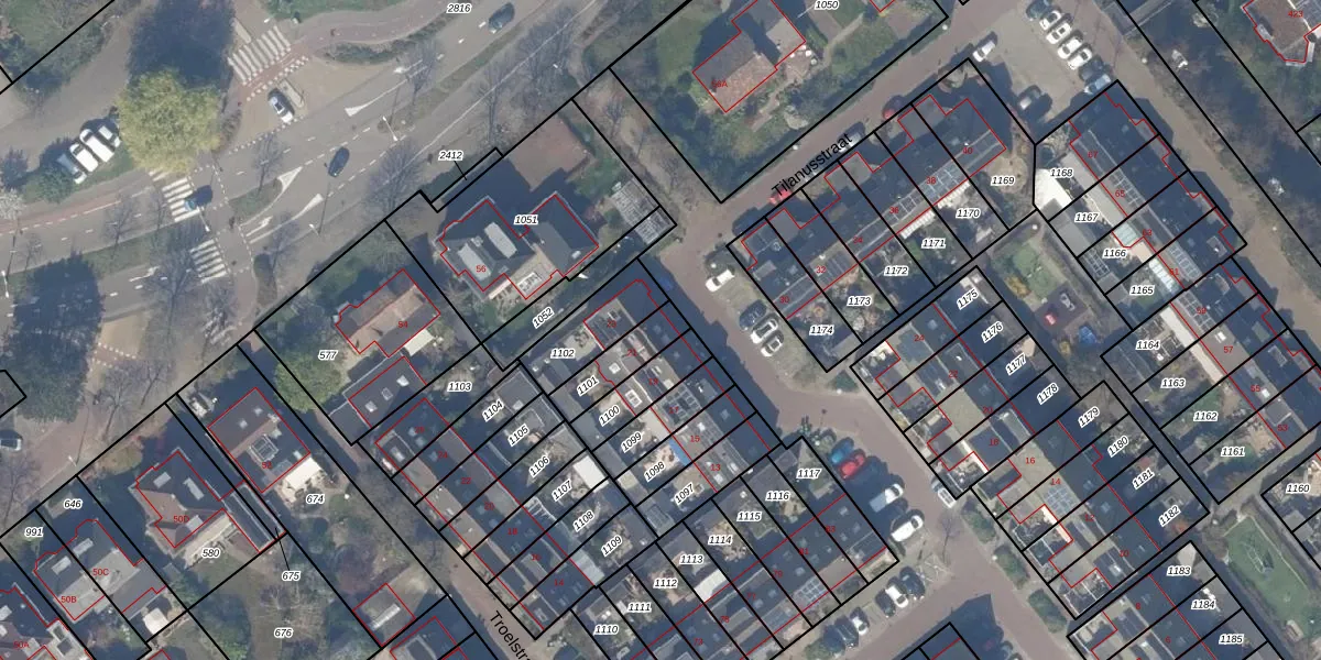 Het perceel waarop Tilanusstraat 21 staat heeft een oppervlakte van 126 m². Dit is een middelgroot perceel. De perceeloppervlakte wordt geregistreerd door het Kadaster. Gedetailleerde informatie over de maten van dit perceel kunt u vinden in het rapport Kadastrale kaart met maatvoering van Tilanusstraat 21.