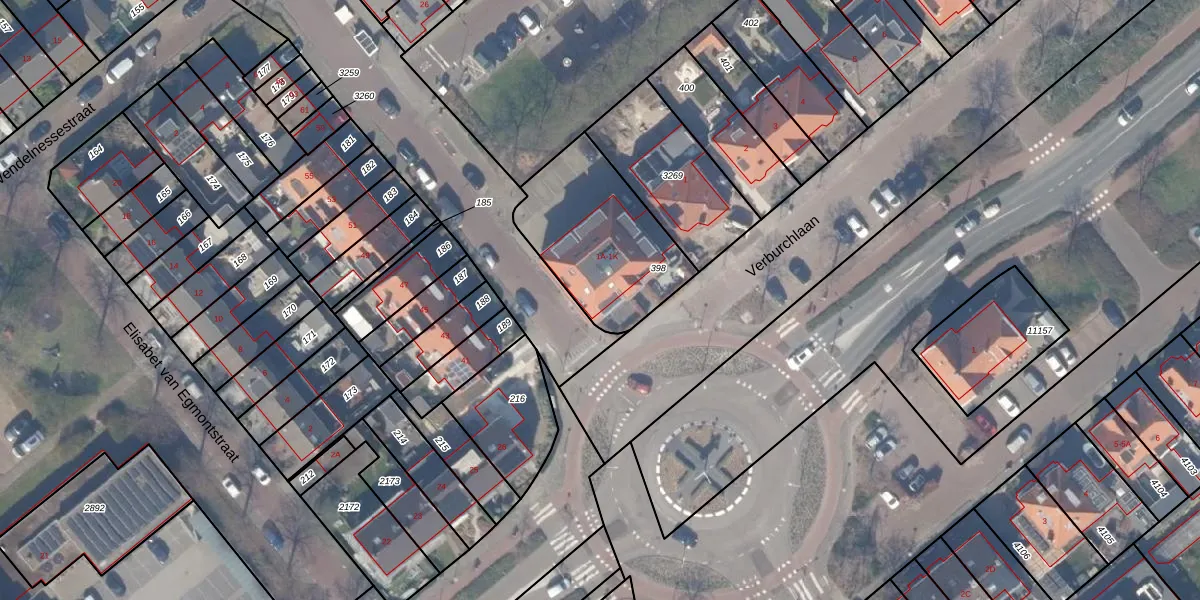 Het perceel waarop Verburchlaan 1-A staat heeft een oppervlakte van 555 m². Dit is een groot perceel. De perceeloppervlakte wordt geregistreerd door het Kadaster. Gedetailleerde informatie over de maten van dit perceel kunt u vinden in het rapport Kadastrale kaart met maatvoering van Verburchlaan 1-A.