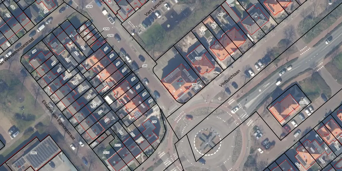 Het perceel waarop Verburchlaan 1-G staat heeft een oppervlakte van 555 m². Dit is een groot perceel. De perceeloppervlakte wordt geregistreerd door het Kadaster. Gedetailleerde informatie over de maten van dit perceel kunt u vinden in het rapport Kadastrale kaart met maatvoering van Verburchlaan 1-G.