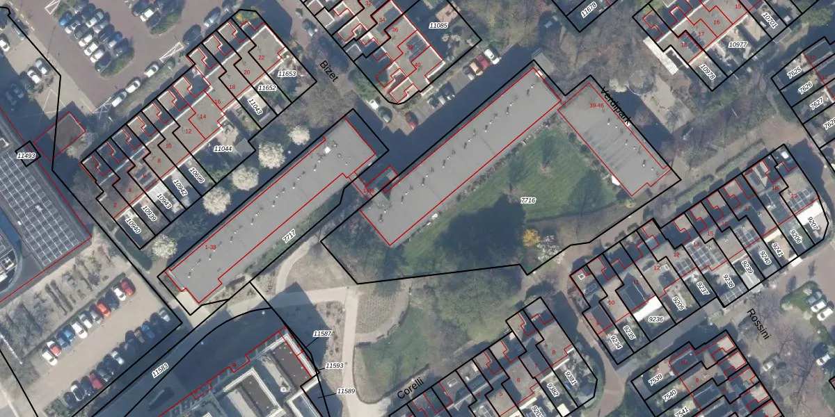 Het perceel waarop Verdipark 32 staat heeft een oppervlakte van 2531 m². Dit is een zeer groot perceel. De perceeloppervlakte wordt geregistreerd door het Kadaster. Gedetailleerde informatie over de maten van dit perceel kunt u vinden in het rapport Kadastrale kaart met maatvoering van Verdipark 32.