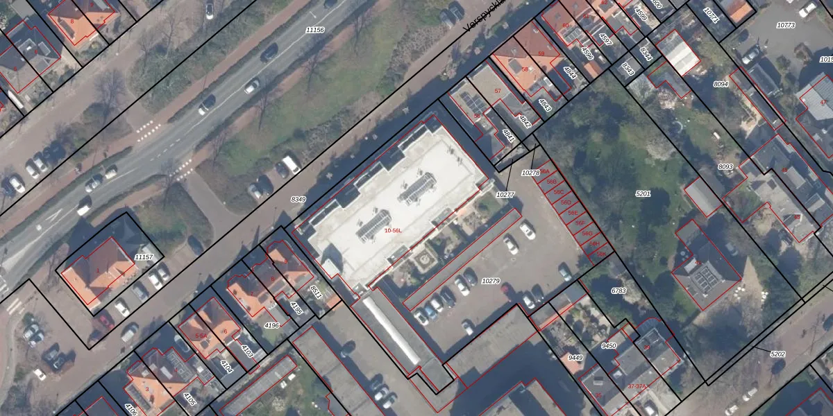 Het perceel waarop Verspycklaan 40 staat heeft een oppervlakte van 2827 m². Dit is een zeer groot perceel. De perceeloppervlakte wordt geregistreerd door het Kadaster. Gedetailleerde informatie over de maten van dit perceel kunt u vinden in het rapport Kadastrale kaart met maatvoering van Verspycklaan 40.