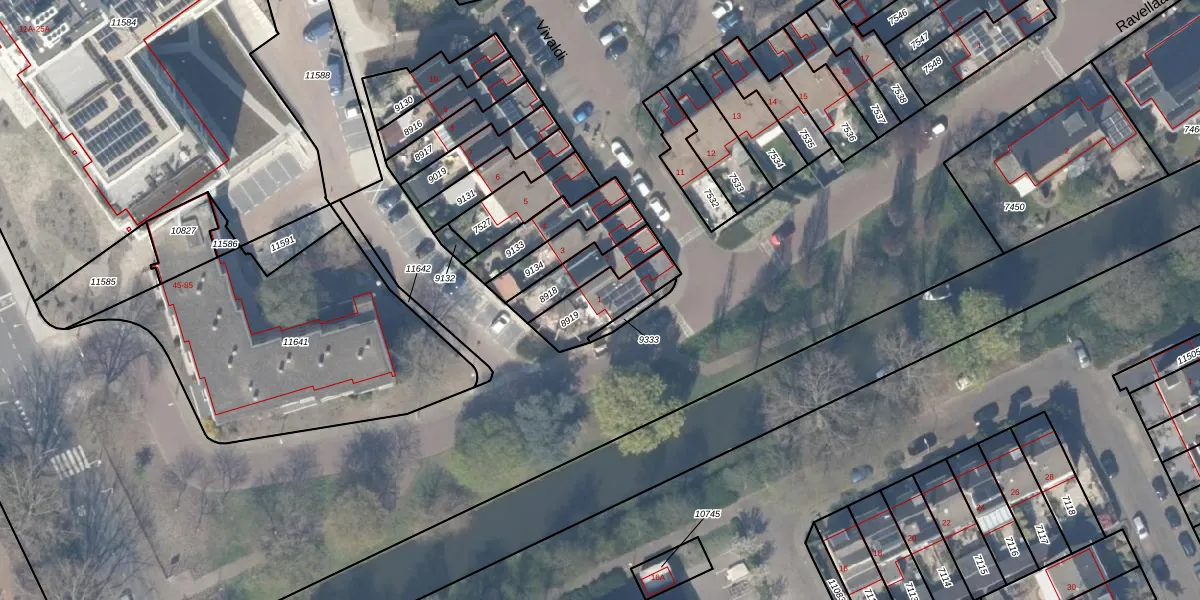 Het perceel waarop Vivaldi 1 staat heeft een oppervlakte van 165 m². Dit is een middelgroot perceel. De perceeloppervlakte wordt geregistreerd door het Kadaster. Gedetailleerde informatie over de maten van dit perceel kunt u vinden in het rapport Kadastrale kaart met maatvoering van Vivaldi 1.