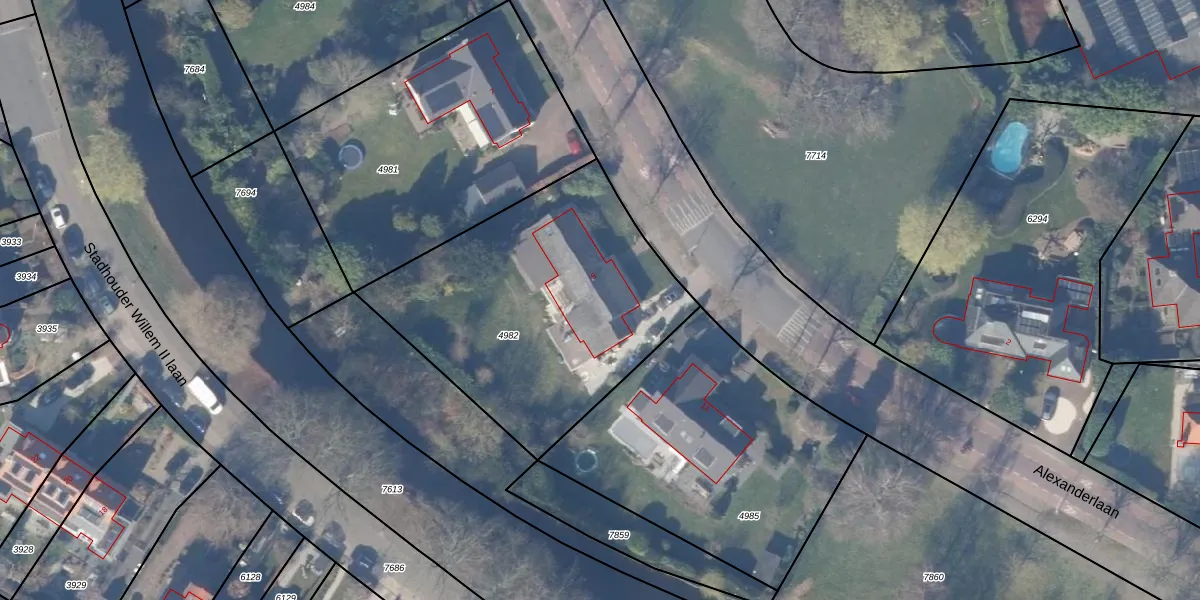Het perceel waarop Alexanderlaan 9 staat heeft een oppervlakte van 1458 m². Dit is een zeer groot perceel. De perceeloppervlakte wordt geregistreerd door het Kadaster. Gedetailleerde informatie over de maten van dit perceel kunt u vinden in het rapport Kadastrale kaart met maatvoering van Alexanderlaan 9.