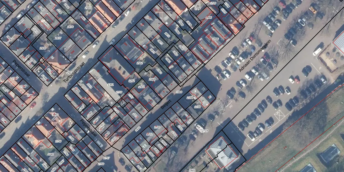 Gebruik de zoekbalk of klik op een perceel voor informatie over de adressen binnen dit perceel.