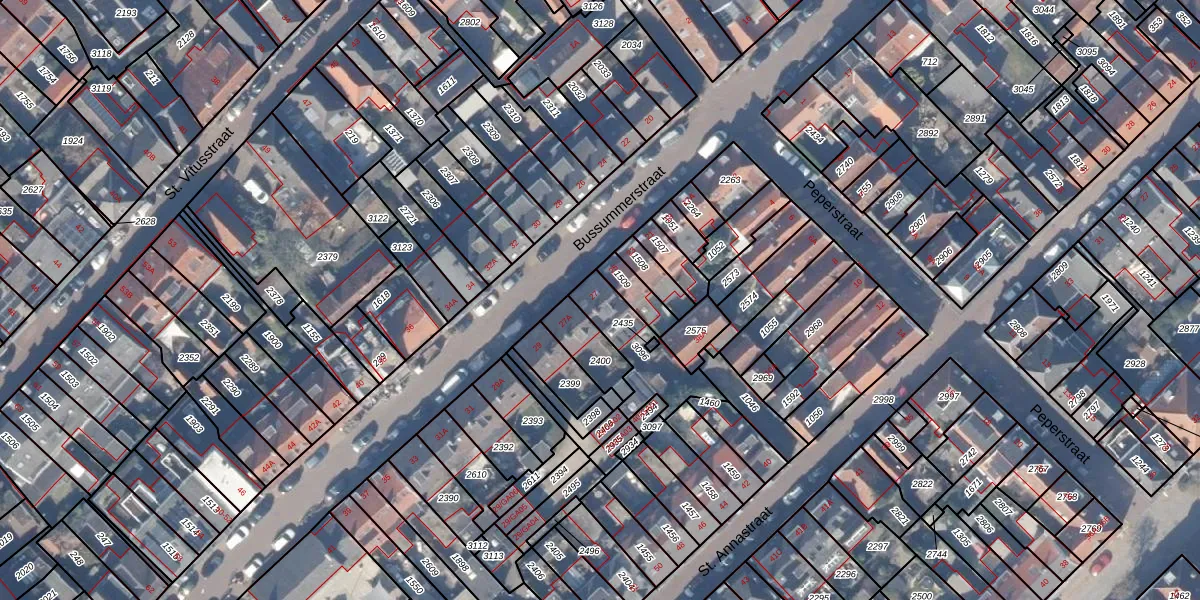 Bussummerstraat 27 is gelegen op kadastraal perceel NDN00G3096. Deze kadastrale aanduiding is uniek en wordt gebruikt door het Kadaster om eigendomsrechten en andere zakelijke rechten vast te leggen. Het perceel maakt onderdeel uit van de kadastrale gemeente Naarden.