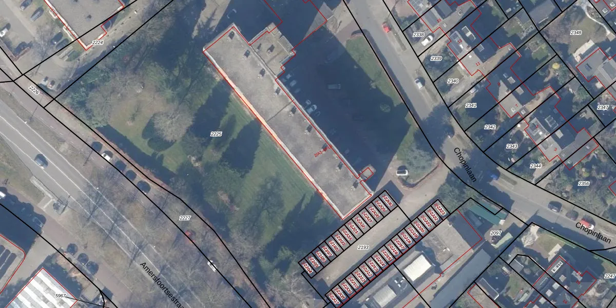 Het perceel waarop Chopinlaan 2-A3 staat heeft een oppervlakte van 8363 m². Dit is een zeer groot perceel. De perceeloppervlakte wordt geregistreerd door het Kadaster. Gedetailleerde informatie over de maten van dit perceel kunt u vinden in het rapport Kadastrale kaart met maatvoering van Chopinlaan 2-A3.