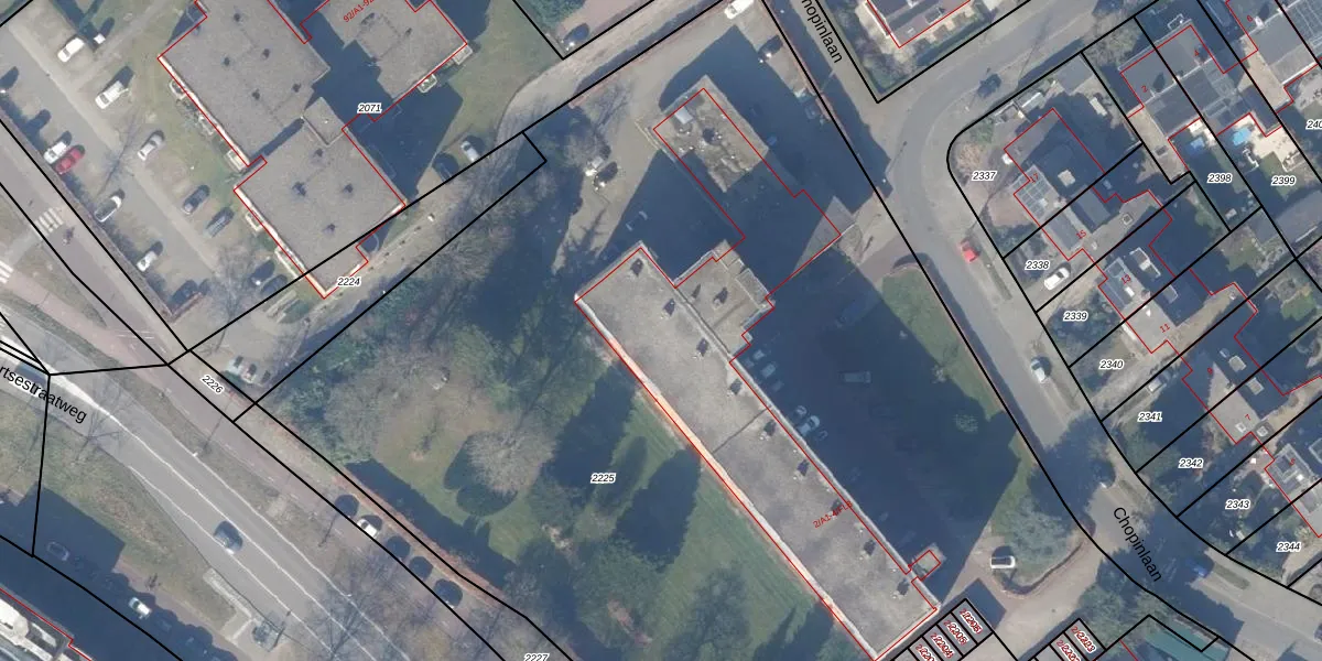 Het perceel waarop Chopinlaan 2-E4 staat heeft een oppervlakte van 8363 m². Dit is een zeer groot perceel. De perceeloppervlakte wordt geregistreerd door het Kadaster. Gedetailleerde informatie over de maten van dit perceel kunt u vinden in het rapport Kadastrale kaart met maatvoering van Chopinlaan 2-E4.