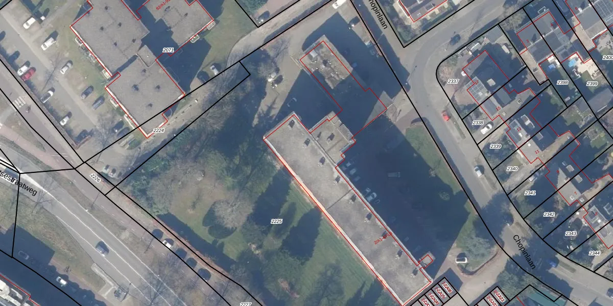 Het perceel waarop Chopinlaan 2-F3 staat heeft een oppervlakte van 8363 m². Dit is een zeer groot perceel. De perceeloppervlakte wordt geregistreerd door het Kadaster. Gedetailleerde informatie over de maten van dit perceel kunt u vinden in het rapport Kadastrale kaart met maatvoering van Chopinlaan 2-F3.