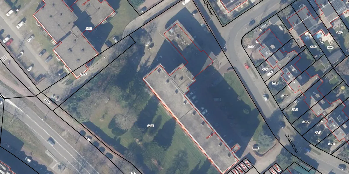 Het perceel waarop Chopinlaan 2-F4 staat heeft een oppervlakte van 8363 m². Dit is een zeer groot perceel. De perceeloppervlakte wordt geregistreerd door het Kadaster. Gedetailleerde informatie over de maten van dit perceel kunt u vinden in het rapport Kadastrale kaart met maatvoering van Chopinlaan 2-F4.