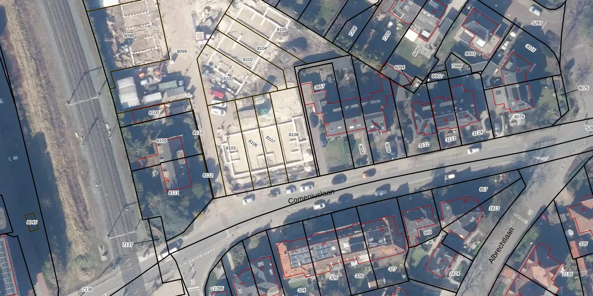 Comeniuslaan 36 is gelegen op kadastraal perceel NDN00D8108. Deze kadastrale aanduiding is uniek en wordt gebruikt door het Kadaster om eigendomsrechten en andere zakelijke rechten vast te leggen. Het perceel maakt onderdeel uit van de kadastrale gemeente Naarden.