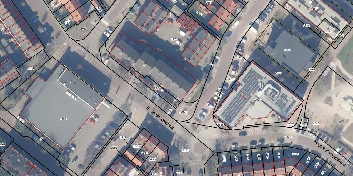Het perceel waarop E. de Bruynstraat 37 staat heeft een oppervlakte van 2346 m². Dit is een zeer groot perceel. De perceeloppervlakte wordt geregistreerd door het Kadaster. Gedetailleerde informatie over de maten van dit perceel kunt u vinden in het rapport Kadastrale kaart met maatvoering van E. de Bruynstraat 37.