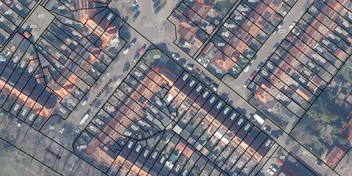 Het perceel waarop E. de Bruynstraat 46 staat heeft een oppervlakte van 112 m². Dit is een middelgroot perceel. De perceeloppervlakte wordt geregistreerd door het Kadaster. Gedetailleerde informatie over de maten van dit perceel kunt u vinden in het rapport Kadastrale kaart met maatvoering van E. de Bruynstraat 46.