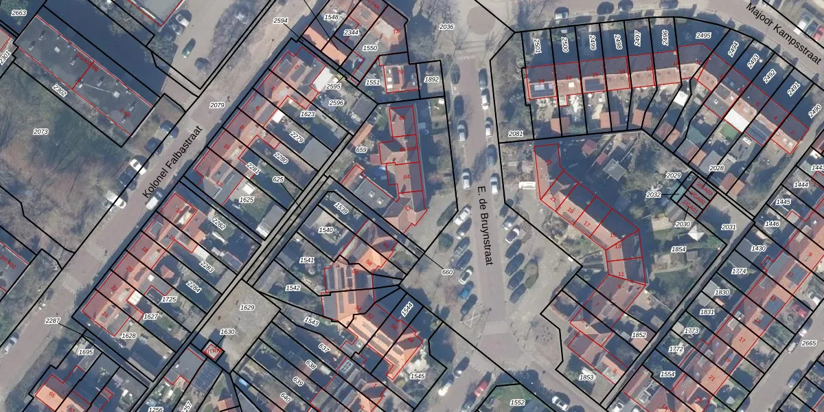 Het perceel waarop E. de Bruynstraat 62 staat heeft een oppervlakte van 742 m². Dit is een groot perceel. De perceeloppervlakte wordt geregistreerd door het Kadaster. Gedetailleerde informatie over de maten van dit perceel kunt u vinden in het rapport Kadastrale kaart met maatvoering van E. de Bruynstraat 62.