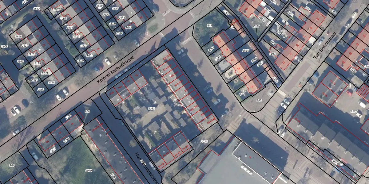 Het adres ligt op het perceel NDN00-F-2033, dat zich in de kadastrale gemeente Naarden bevindt. Het perceel is 2205 m² groot. Dat is kleiner dan de gemiddelde perceeloppervlakte in Naarden, dat op 3475,63 m² ligt. Het grootste perceel in de kadastrale gemeente is 6,23 km². Het kleinste perceel heeft een oppervlakte van 0 m². Er zijn 30 adressen aanwezig op het perceel. De laatste wijziging in het de Basisregistratie Kadaster (BRK) was op 22-07-1999.