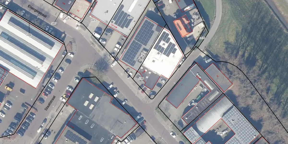 Het perceel waarop Energiestraat 9-B staat heeft een oppervlakte van 911 m². Dit is een groot perceel. De perceeloppervlakte wordt geregistreerd door het Kadaster. Gedetailleerde informatie over de maten van dit perceel kunt u vinden in het rapport Kadastrale kaart met maatvoering van Energiestraat 9-B.