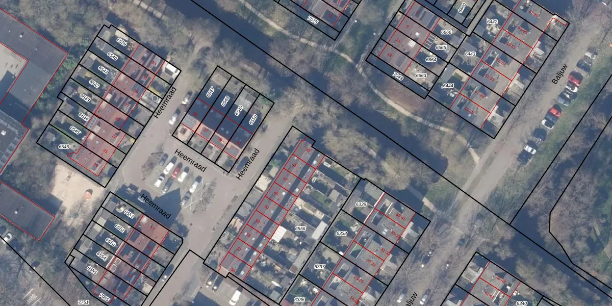 Het perceel waarop Heemraad 43 staat heeft een oppervlakte van 1421 m². Dit is een zeer groot perceel. De perceeloppervlakte wordt geregistreerd door het Kadaster. Gedetailleerde informatie over de maten van dit perceel kunt u vinden in het rapport Kadastrale kaart met maatvoering van Heemraad 43.