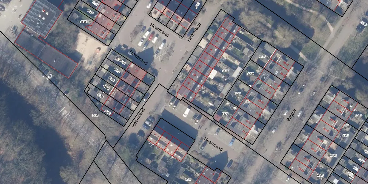 Het perceel waarop Heemraad 59 staat heeft een oppervlakte van 1421 m². Dit is een zeer groot perceel. De perceeloppervlakte wordt geregistreerd door het Kadaster. Gedetailleerde informatie over de maten van dit perceel kunt u vinden in het rapport Kadastrale kaart met maatvoering van Heemraad 59.