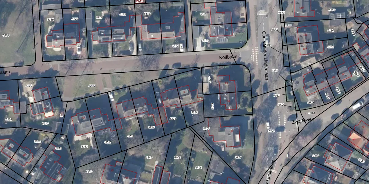 Het perceel waarop Kolfbaan 2 staat heeft een oppervlakte van 377 m². Dit is een groot perceel. De perceeloppervlakte wordt geregistreerd door het Kadaster. Gedetailleerde informatie over de maten van dit perceel kunt u vinden in het rapport Kadastrale kaart met maatvoering van Kolfbaan 2.