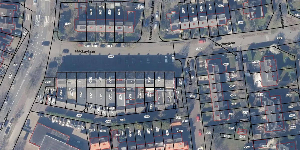Het perceel waarop Mackaylaan 42 staat heeft een oppervlakte van 65 m². Dit is een klein perceel. De perceeloppervlakte wordt geregistreerd door het Kadaster. Gedetailleerde informatie over de maten van dit perceel kunt u vinden in het rapport Kadastrale kaart met maatvoering van Mackaylaan 42.