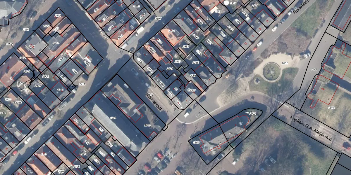Het perceel waarop Marktstraat 4-A staat heeft een oppervlakte van 68 m². Dit is een klein perceel. De perceeloppervlakte wordt geregistreerd door het Kadaster. Gedetailleerde informatie over de maten van dit perceel kunt u vinden in het rapport Kadastrale kaart met maatvoering van Marktstraat 4-A.
