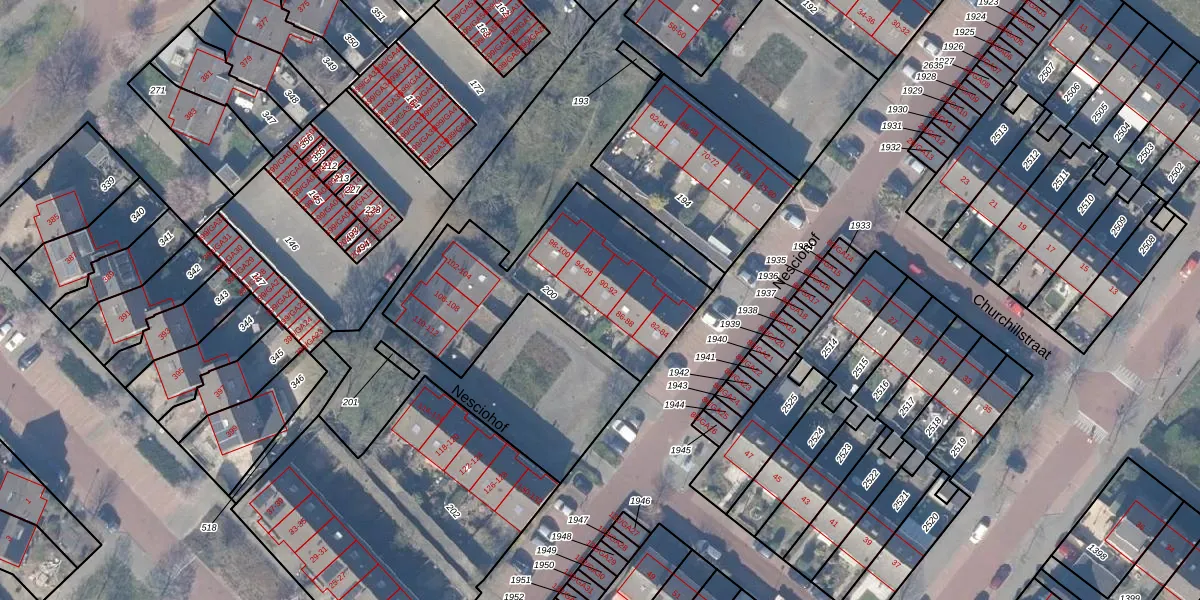 Het perceel waarop Nesciohof 90 staat heeft een oppervlakte van 902 m². Dit is een groot perceel. De perceeloppervlakte wordt geregistreerd door het Kadaster. Gedetailleerde informatie over de maten van dit perceel kunt u vinden in het rapport Kadastrale kaart met maatvoering van Nesciohof 90.