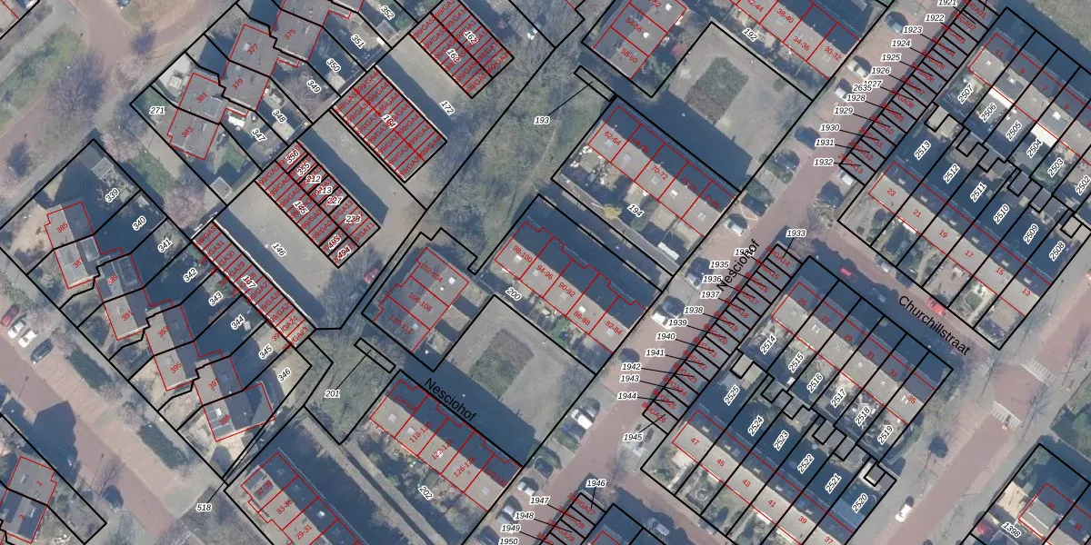 Het perceel waarop Nesciohof 96 staat heeft een oppervlakte van 902 m². Dit is een groot perceel. De perceeloppervlakte wordt geregistreerd door het Kadaster. Gedetailleerde informatie over de maten van dit perceel kunt u vinden in het rapport Kadastrale kaart met maatvoering van Nesciohof 96.