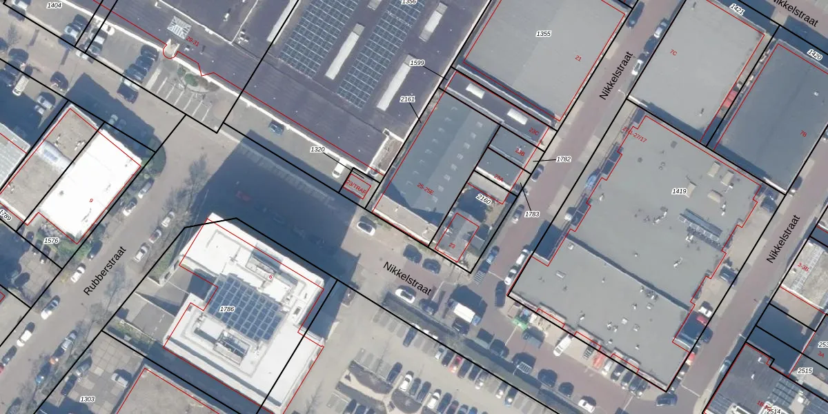 Het perceel waarop Nikkelstraat 25-A staat heeft een oppervlakte van 612 m². Dit is een groot perceel. De perceeloppervlakte wordt geregistreerd door het Kadaster. Gedetailleerde informatie over de maten van dit perceel kunt u vinden in het rapport Kadastrale kaart met maatvoering van Nikkelstraat 25-A.
