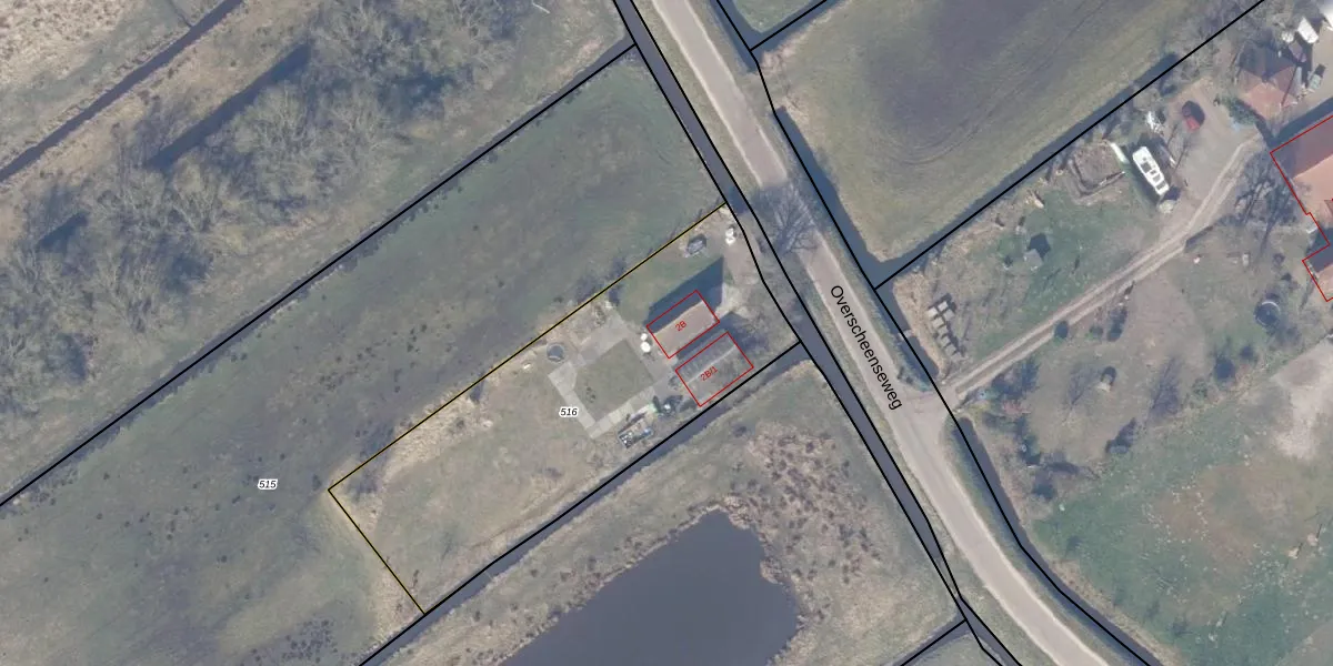Overscheenseweg 2-B is gelegen op kadastraal perceel NDN00H516. Deze kadastrale aanduiding is uniek en wordt gebruikt door het Kadaster om eigendomsrechten en andere zakelijke rechten vast te leggen. Het perceel maakt onderdeel uit van de kadastrale gemeente Naarden.