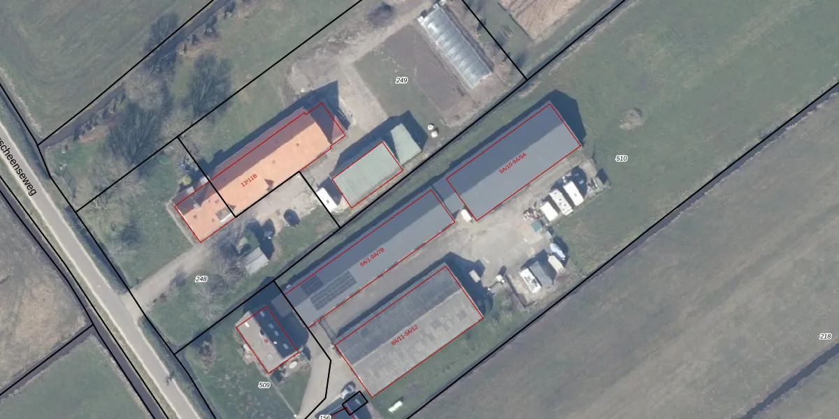 Het perceel waarop Overscheenseweg 9-A-7A staat heeft een oppervlakte van 9955 m². Dit is een zeer groot perceel. De perceeloppervlakte wordt geregistreerd door het Kadaster. Gedetailleerde informatie over de maten van dit perceel kunt u vinden in het rapport Kadastrale kaart met maatvoering van Overscheenseweg 9-A-7A.