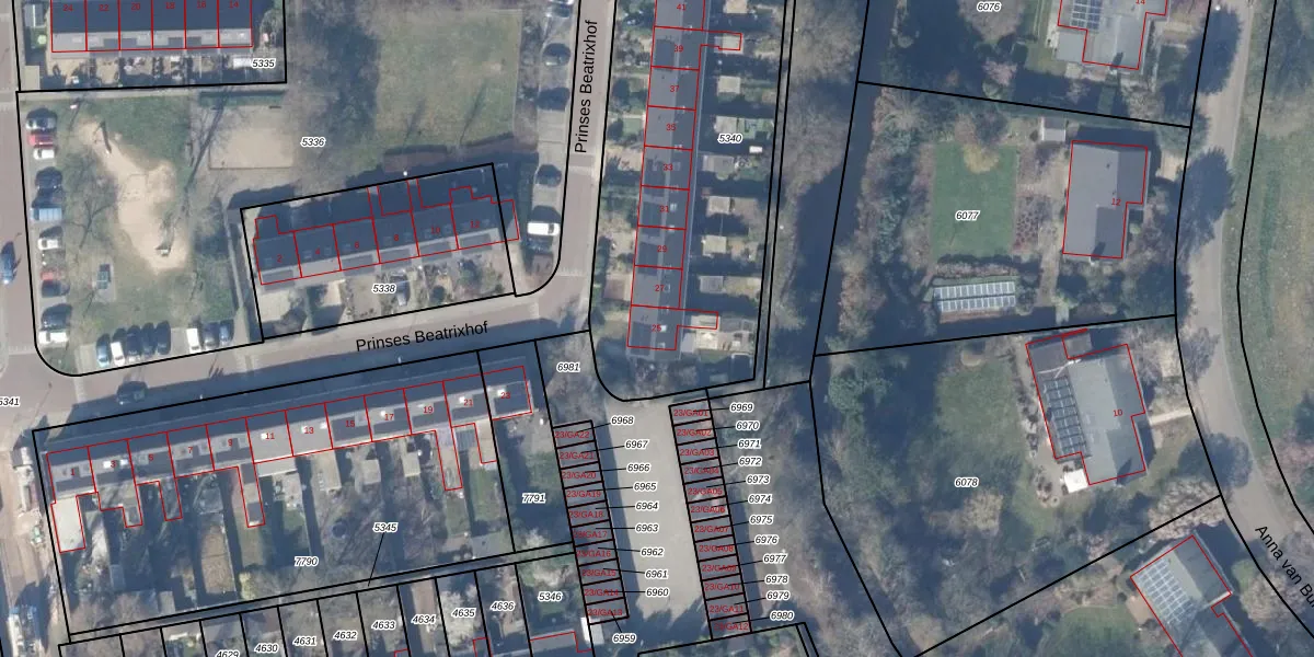 Het perceel waarop Prinses Beatrixhof 25 staat heeft een oppervlakte van 2150 m². Dit is een zeer groot perceel. De perceeloppervlakte wordt geregistreerd door het Kadaster. Gedetailleerde informatie over de maten van dit perceel kunt u vinden in het rapport Kadastrale kaart met maatvoering van Prinses Beatrixhof 25.