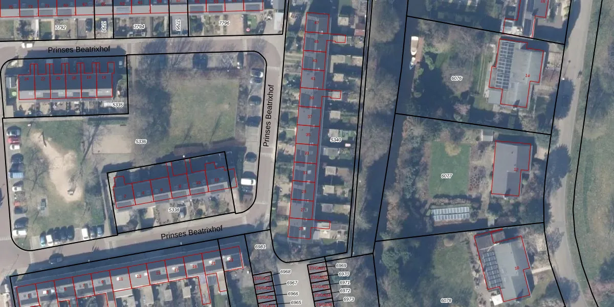 Het perceel waarop Prinses Beatrixhof 33 staat heeft een oppervlakte van 2150 m². Dit is een zeer groot perceel. De perceeloppervlakte wordt geregistreerd door het Kadaster. Gedetailleerde informatie over de maten van dit perceel kunt u vinden in het rapport Kadastrale kaart met maatvoering van Prinses Beatrixhof 33.