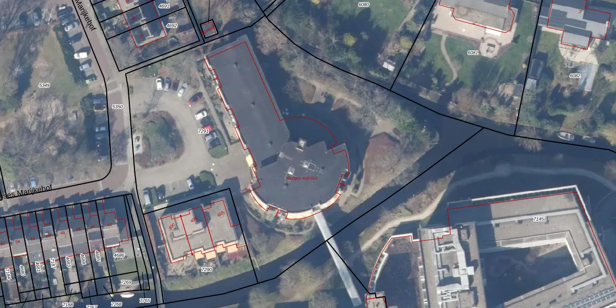 Prinses Marijkehof 40-F014 is gelegen op kadastraal perceel NDN00D7291. Deze kadastrale aanduiding is uniek en wordt gebruikt door het Kadaster om eigendomsrechten en andere zakelijke rechten vast te leggen. Het perceel maakt onderdeel uit van de kadastrale gemeente Naarden.