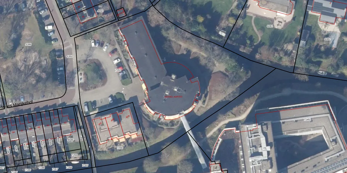Prinses Marijkehof 40-F018 is gelegen op kadastraal perceel NDN00D7291. Deze kadastrale aanduiding is uniek en wordt gebruikt door het Kadaster om eigendomsrechten en andere zakelijke rechten vast te leggen. Het perceel maakt onderdeel uit van de kadastrale gemeente Naarden.