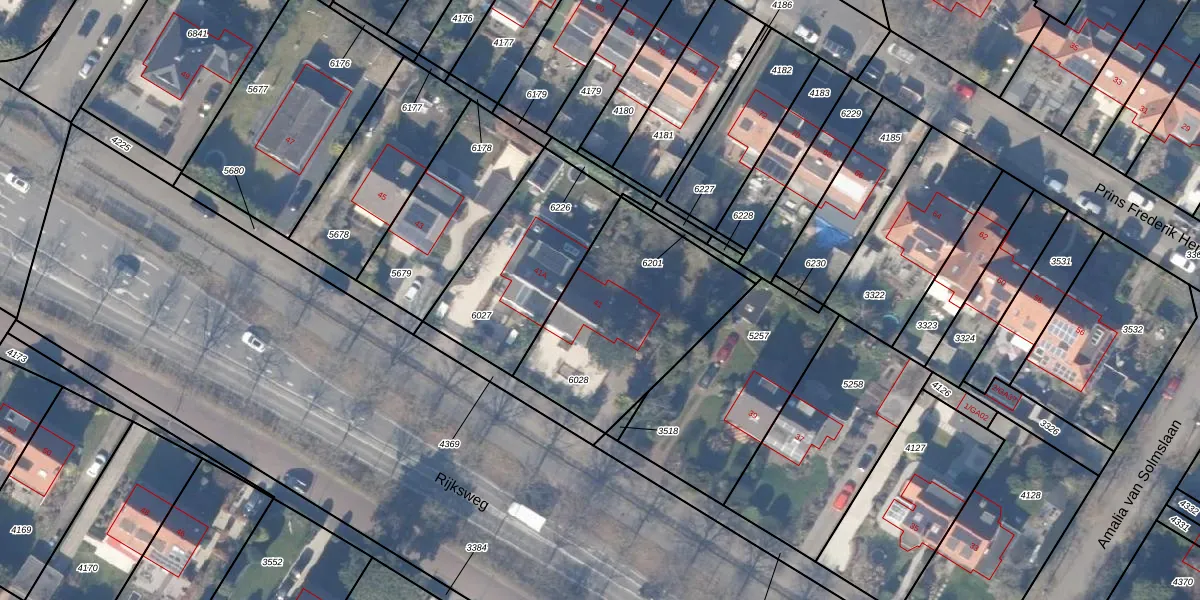 Rijksweg 41 is gelegen op kadastraal perceel NDN00D6028. Deze kadastrale aanduiding is uniek en wordt gebruikt door het Kadaster om eigendomsrechten en andere zakelijke rechten vast te leggen. Het perceel maakt onderdeel uit van de kadastrale gemeente Naarden.