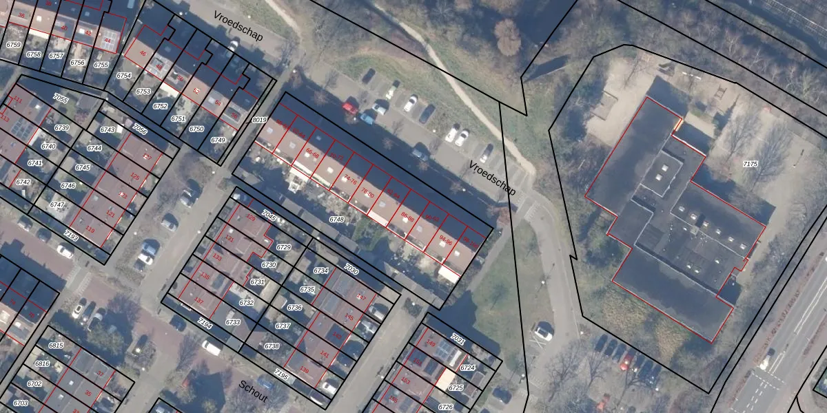 Het perceel waarop Vroedschap 86 staat heeft een oppervlakte van 1425 m². Dit is een zeer groot perceel. De perceeloppervlakte wordt geregistreerd door het Kadaster. Gedetailleerde informatie over de maten van dit perceel kunt u vinden in het rapport Kadastrale kaart met maatvoering van Vroedschap 86.