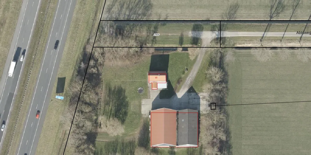 Het perceel waarop Abtsweg 10 staat heeft een oppervlakte van 8,2 ha. Dit is een zeer groot perceel. De perceeloppervlakte wordt geregistreerd door het Kadaster. Gedetailleerde informatie over de maten van dit perceel kunt u vinden in het rapport Kadastrale kaart met maatvoering van Abtsweg 10.