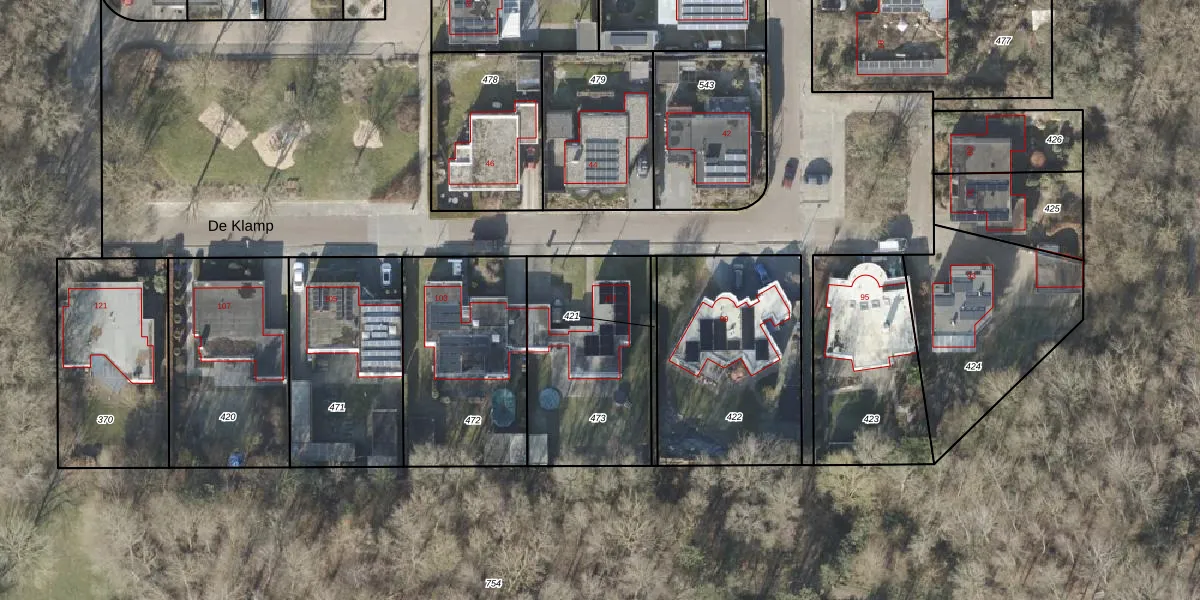 Het perceel waarop De Klamp 101 staat heeft een oppervlakte van 726 m². Dit is een groot perceel. De perceeloppervlakte wordt geregistreerd door het Kadaster. Gedetailleerde informatie over de maten van dit perceel kunt u vinden in het rapport Kadastrale kaart met maatvoering van De Klamp 101.
