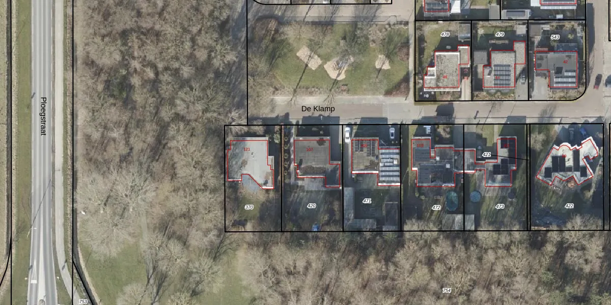Het perceel waarop De Klamp 107 staat heeft een oppervlakte van 705 m². Dit is een groot perceel. De perceeloppervlakte wordt geregistreerd door het Kadaster. Gedetailleerde informatie over de maten van dit perceel kunt u vinden in het rapport Kadastrale kaart met maatvoering van De Klamp 107.