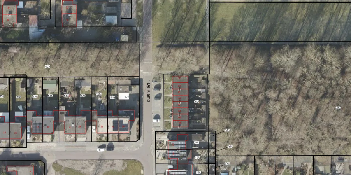Het perceel waarop De Klamp 53 staat heeft een oppervlakte van 822 m². Dit is een groot perceel. De perceeloppervlakte wordt geregistreerd door het Kadaster. Gedetailleerde informatie over de maten van dit perceel kunt u vinden in het rapport Kadastrale kaart met maatvoering van De Klamp 53.