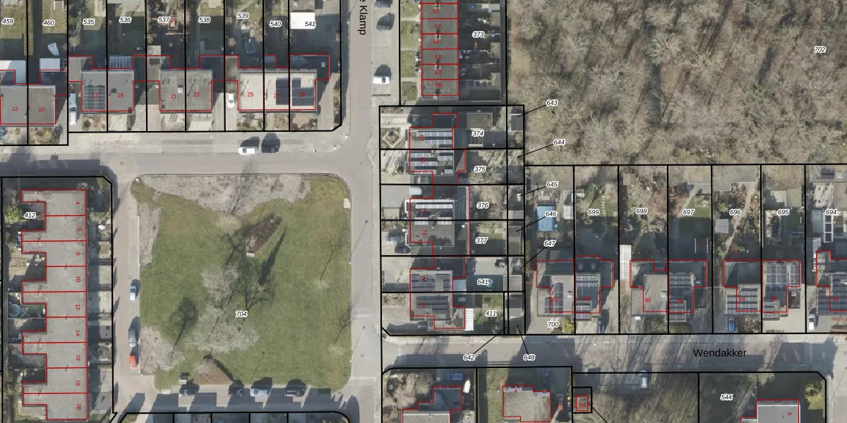 Gebruik de zoekbalk of klik op een perceel voor informatie over de adressen binnen dit perceel.