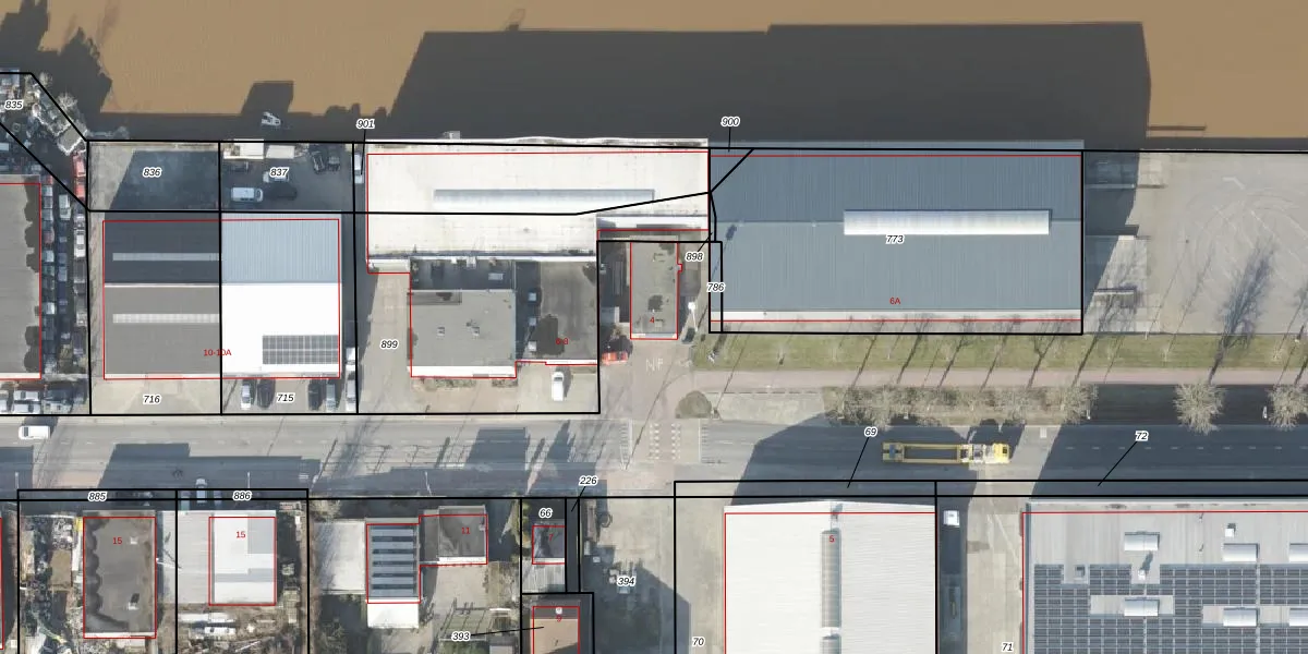 Gebruik de zoekbalk of klik op een perceel voor informatie over de adressen binnen dit perceel.