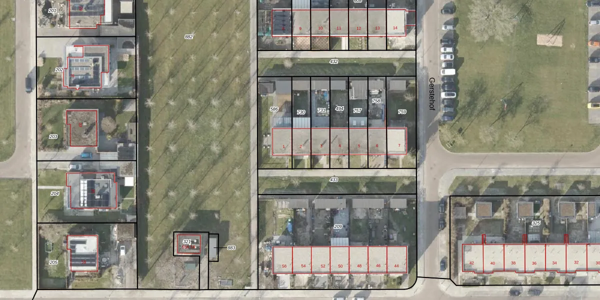 Het perceel waarop Gerstehof 2 staat heeft een oppervlakte van 195 m². Dit is een middelgroot perceel. De perceeloppervlakte wordt geregistreerd door het Kadaster. Gedetailleerde informatie over de maten van dit perceel kunt u vinden in het rapport Kadastrale kaart met maatvoering van Gerstehof 2.