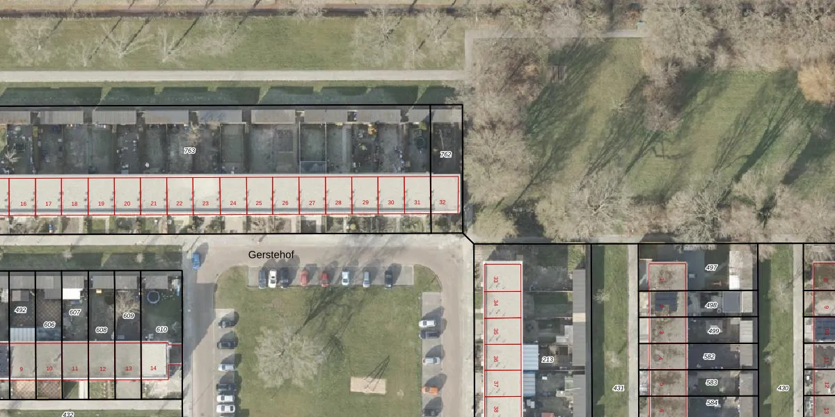 Het perceel waarop Gerstehof 31 staat heeft een oppervlakte van 3473 m². Dit is een zeer groot perceel. De perceeloppervlakte wordt geregistreerd door het Kadaster. Gedetailleerde informatie over de maten van dit perceel kunt u vinden in het rapport Kadastrale kaart met maatvoering van Gerstehof 31.