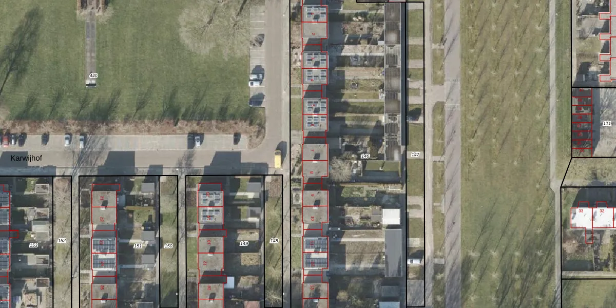 Karwijhof 7 is gelegen op kadastraal perceel NOP00DZ146. Deze kadastrale aanduiding is uniek en wordt gebruikt door het Kadaster om eigendomsrechten en andere zakelijke rechten vast te leggen. Het perceel maakt onderdeel uit van de kadastrale gemeente Noordoostpolder.