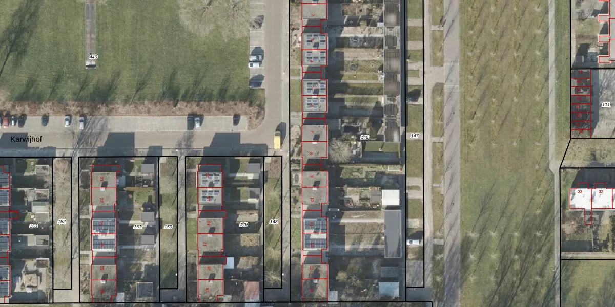 Het perceel waarop Karwijhof 8 staat heeft een oppervlakte van 3938 m². Dit is een zeer groot perceel. De perceeloppervlakte wordt geregistreerd door het Kadaster. Gedetailleerde informatie over de maten van dit perceel kunt u vinden in het rapport Kadastrale kaart met maatvoering van Karwijhof 8.