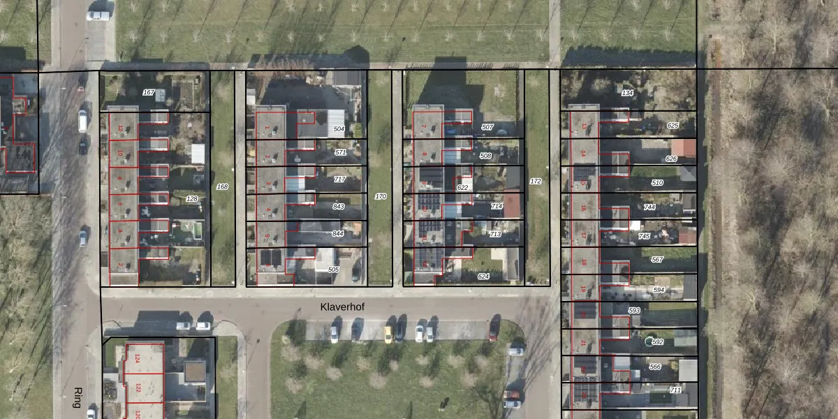 Het perceel waarop Klaverhof 10 staat heeft een oppervlakte van 187 m². Dit is een middelgroot perceel. De perceeloppervlakte wordt geregistreerd door het Kadaster. Gedetailleerde informatie over de maten van dit perceel kunt u vinden in het rapport Kadastrale kaart met maatvoering van Klaverhof 10.