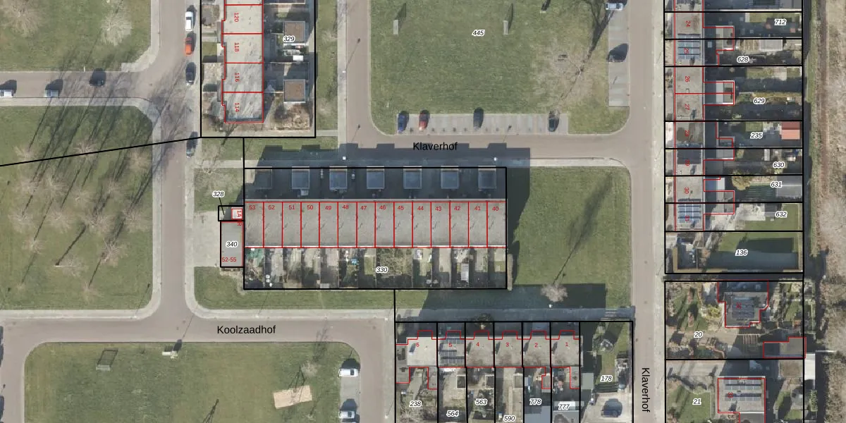 Het perceel waarop Klaverhof 44 staat heeft een oppervlakte van 1770 m². Dit is een zeer groot perceel. De perceeloppervlakte wordt geregistreerd door het Kadaster. Gedetailleerde informatie over de maten van dit perceel kunt u vinden in het rapport Kadastrale kaart met maatvoering van Klaverhof 44.