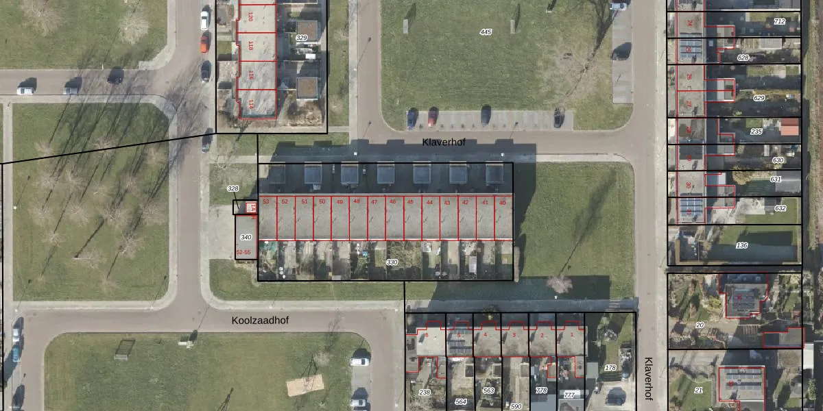 Klaverhof 45 is gelegen op kadastraal perceel NOP00DZ330. Deze kadastrale aanduiding is uniek en wordt gebruikt door het Kadaster om eigendomsrechten en andere zakelijke rechten vast te leggen. Het perceel maakt onderdeel uit van de kadastrale gemeente Noordoostpolder.