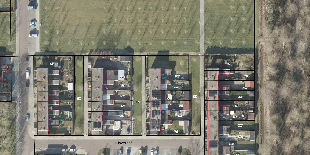 Het perceel waarop Klaverhof 7 staat heeft een oppervlakte van 481 m². Dit is een groot perceel. De perceeloppervlakte wordt geregistreerd door het Kadaster. Gedetailleerde informatie over de maten van dit perceel kunt u vinden in het rapport Kadastrale kaart met maatvoering van Klaverhof 7.